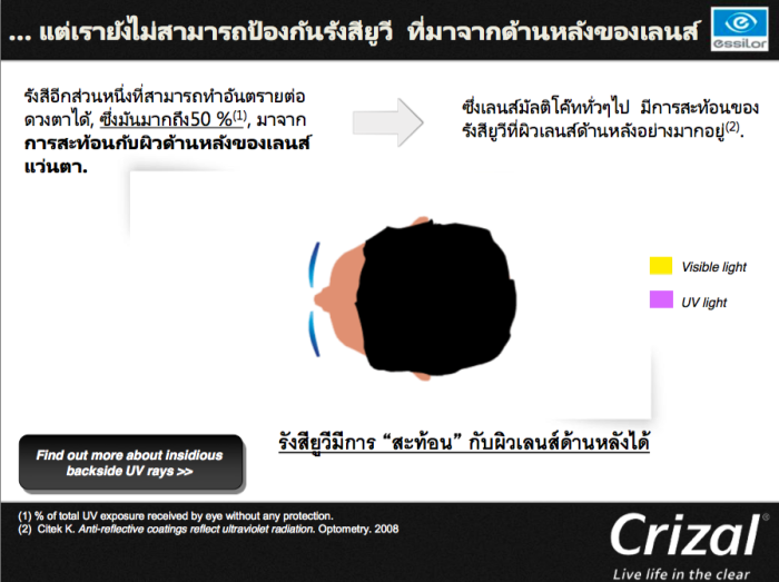 CRIZAL FORTE UV สามารถป้องกันUVจากBACKSIDEของเลนส์ นั้นทำงานอย่างไร ป้องกันได้อย่างไร?