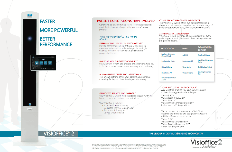 July 5, 2015March 6, 2016 VISIO OFFICE 2 AT OGOPTICIAN ตรวจวัดจุดโฟกัสตาขณะใส่กรอบเเว่นด้วยระบบdigital 3มิติ พร้อมวัดพารามิเตอร์กรอบเเบบอัตโนมัติ เเละจุดศูนย์กลางการหมุนของลูกตา (eye rotation center) ด้วยเครื่อง VISIO OFFICE 2 Share this: Click to share on X (Opens in new window) X Click to share on Facebook (Opens in new window) Facebook Like Loading... Related