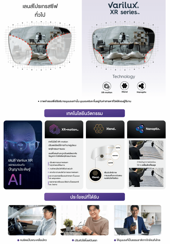 | คุณสมบัติ | Varilux Physio.extensee | Varilux XR Series |